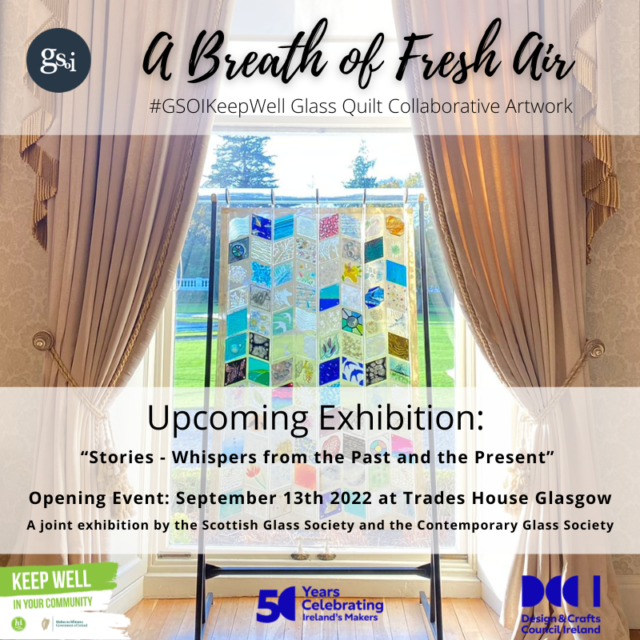 Our KeepWell Glass Quilt is traveling to Glasgow to join the exhibition ‘Stories – Whispers from the Past and the Present’, hosted by the Scottish Glass Society and the Contemporary…