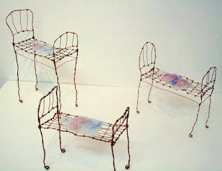 Mags O’Dea presented ‘Transparent’ which comprised of delicate pate de verre sculptures of hot-water bottles on wiry beds. Her work emphasises the limitations of social care in hospitals. It is worth noting that Mags worked as a theatre nurse before deciding to pursue art so no doubt the subject is close to home.