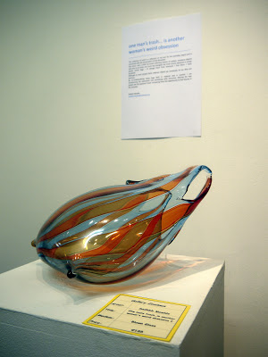 Last but not least Sadhbh Mowlds presented ‘one man’s trash… is another woman’s weird obsession’. These beautiful cane-worked glass plastic bags blowing in the imaginary wind are about the significance of a common object that is often overlooked and also about translating the ephemerality of billowing plastic into something solid and frozen.