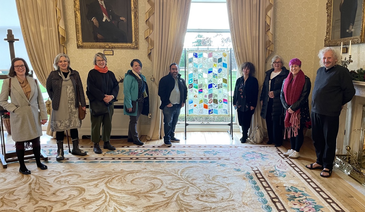 DetailsPresident Micheal D Higgins received members of the Glass Society of Ireland to Áras an Uachtaráin to view the The Keep Well Glass Quilt installation, entitled ‘A Breath of Fresh…