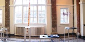 Yan’s work uses glass, ceramic and textile. Her practice is about flowers floating on the