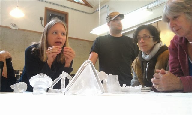 ‘Gwyn Grace went to Pilchuck Glass School in August 2012 on a Partner half-scholarship through NCAD having just finished 3rd year. Her course was lost-wax kiln-casting ‘Shape into form’ with Joel Hurlbert and Karin Tornell – glass artists working in Stockholm, Sweden. There were 9 on the course, a mix of students and established artists and teachers. Kiln casting is a long process so time for finishing and cold-working was short as most of the pieces were only ready a few days before the end however most of us were able to take our work with us to complete once we’d returned home. All the class worked long hours, often well after midnight preparing for a kilnfiring but we had lots of fun as well. The pace of the kiln-casting class gave us lots of opportunity to see demonstrations happening in other classes and meet the rest of students. She summed up here experience with a toast: “ Here’s to fond memories, future plans and heart-felt thanks to everyone’s generosity of spirit!”’