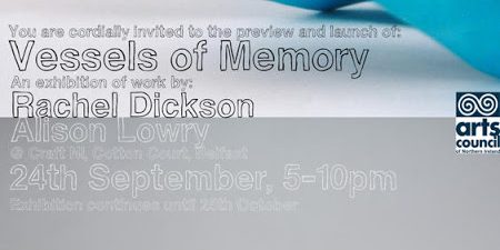 A joint exhibition of ceramics and glass by artists Alison Lowry and Rachel Dickson opens from 5 – 10pm on Friday 24 September in Craft NI, Cotton Court, Belfast. The exhibition then runs until 28 October. For more information on the show, which opens during Culture Night Belfast, visit,